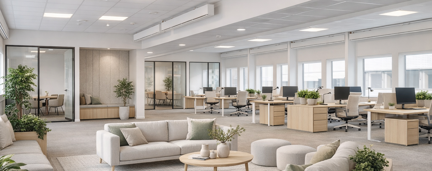 Moderne kontorlejemål tæt på lufthavn og metro – med fællesfaciliteter, der løfter hverdagen