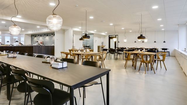 Lejerne har adgang til fælleskantine og mødelokaler til fri afbenyttelse. Der er cykelkælder med bad og omklædningsfaciliteter, en stor parkeringsplads med ladestandere til elbiler samt gode cykelparkeringsforhold. Rammerne fremstår lyse og professionelle.