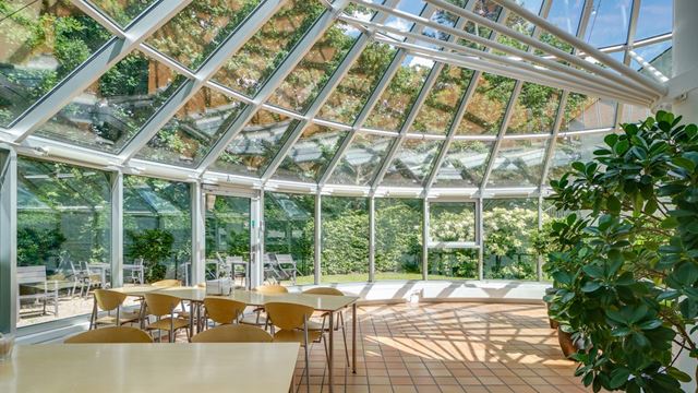 Som lejer har I adgang til et fælles orangeri og en kantine med udgang til gårdmiljøet samt auditorium, arkiv og omklædningsfaciliteter i kælderen. Der er desuden gratis parkering på hele ejendommen.