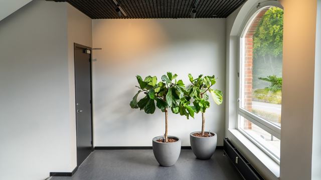 Fleksibelt indrettet kontor med godt naturligt lysin
