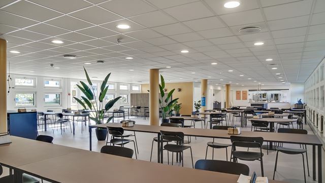 Kontorfællesskab med lyse lokaler og fælles kantine