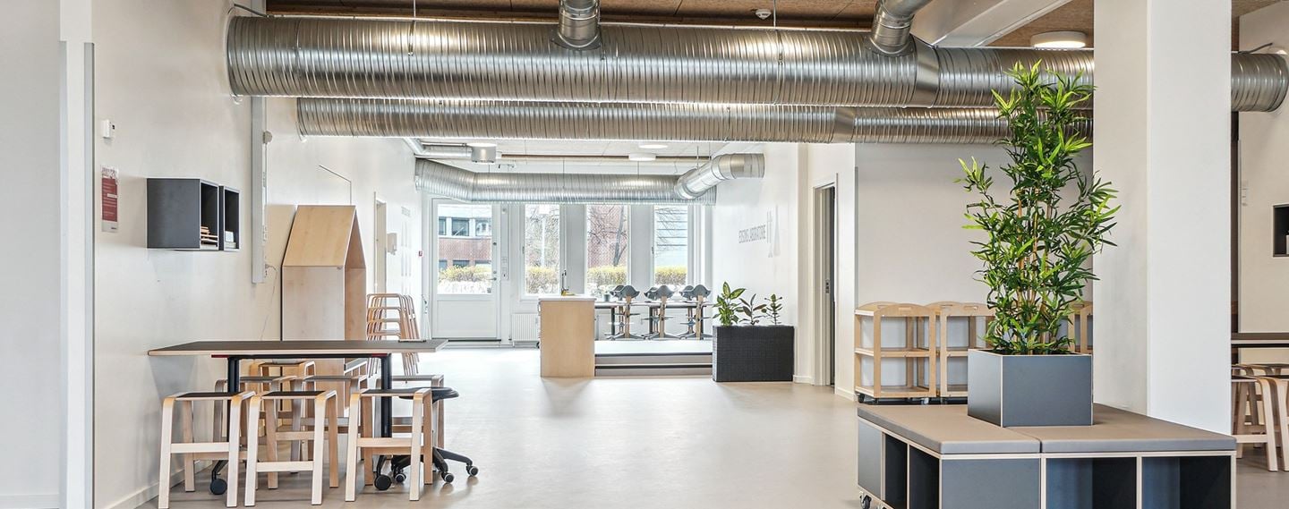 Hos Wihlborgs går vi altid efter at bevare vores ejendomme og bygninger - i stedet for at rive ned og bygge nyt. Derfor er det fantastisk at se denne ældre bygning, som har fået nyt liv. Den nye daginstitution, der er blevet døbt Børnehuset Edison, er opført i stueetagen på vores store kontorejendom på Hørkær 18. Lokalerne i stueetagen har tidligere været anvendt som kontorlejemål, men efter en omfattende renovering, er der nu skabt 1500 kvadratmeter topmoderne daginstitution.