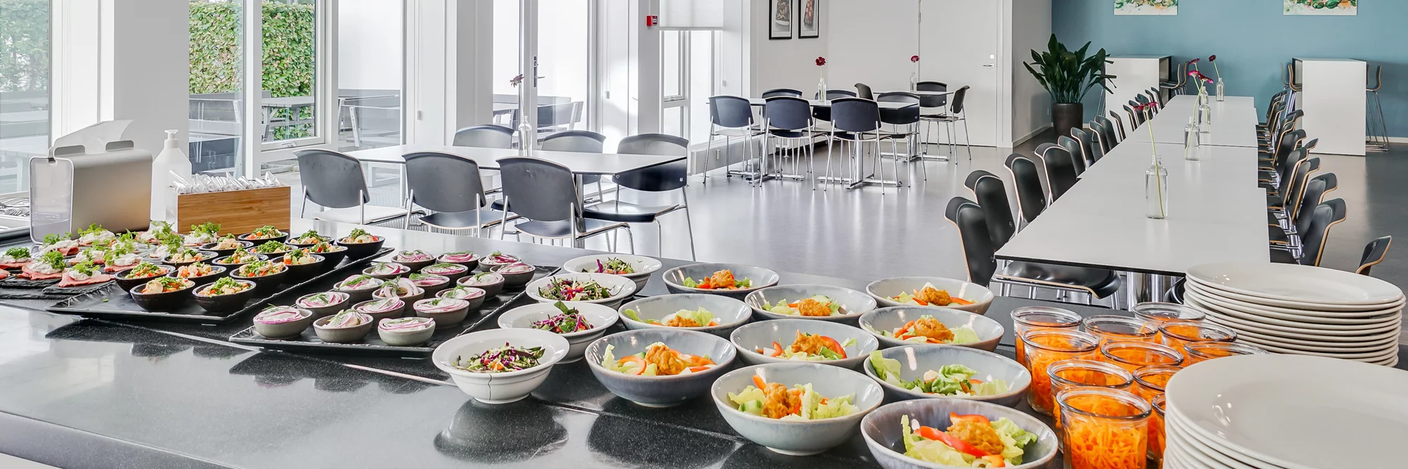 Vi har en række gode samarbejdspartnere på de ejendomme, hvor vi har kantiner, som tilbyder attraktive kantineløsninger til vores lejere. Vi har bl.a. Meyers, Huone, ISS, Eat Event og Jespers Torvekøkken.