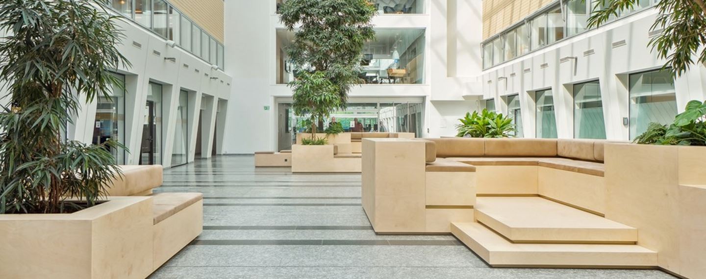 Kontorlejemål med kantine, lounge og gårdhave