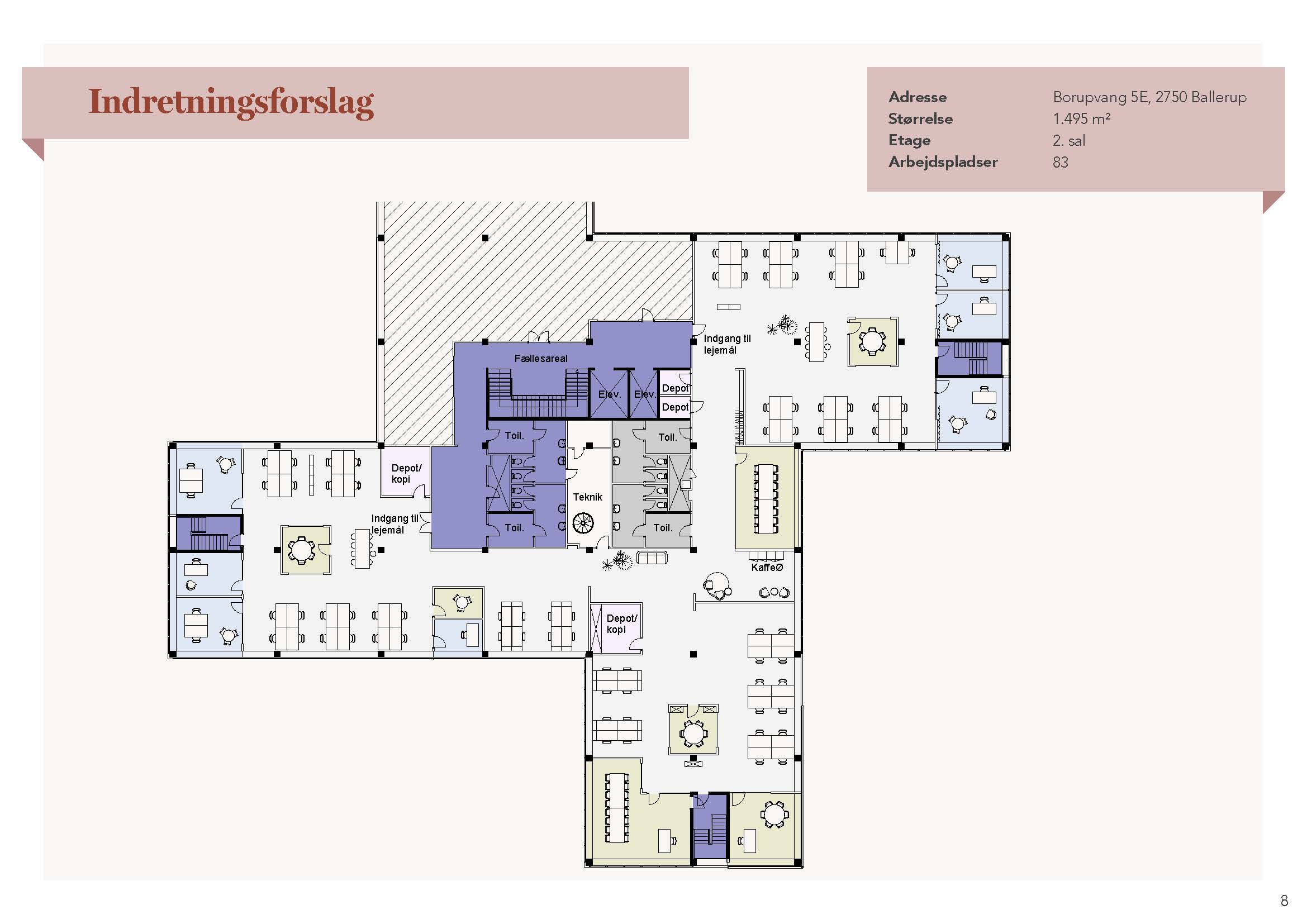 Kontor med bemandet reception og egen tagerrasse