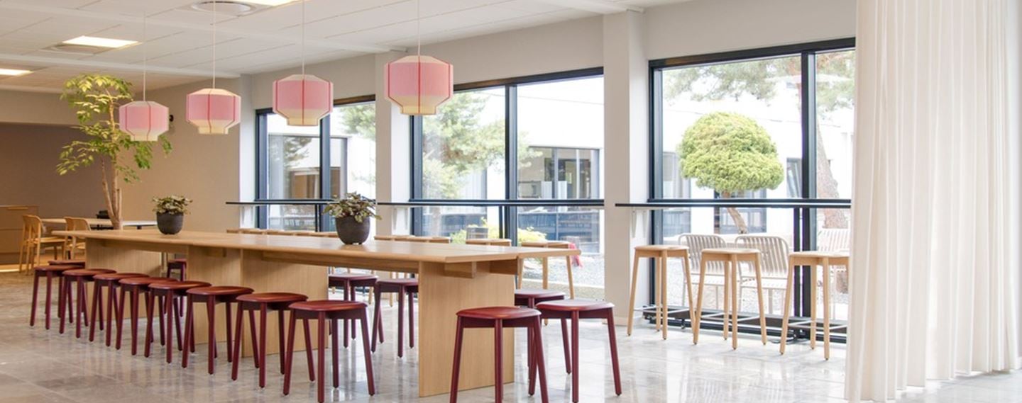 Lyse kontorlokaler med kantine og fitnessfaciliteter