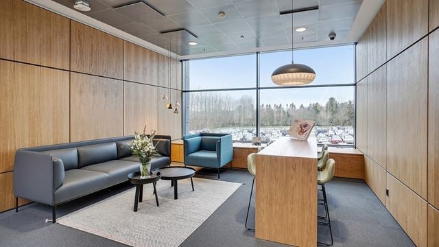 Engholm Parkvej 8 er en moderne og funktionel kontorejendom med markant glasfacade og et præsentabelt indgangsparti. Et stort, lyst atrium strækker sig gennem hele huset og skaber et naturligt samlingspunkt, hvorfra lejemål og mødezoner tilgås. Placeringen i Allerød er attraktiv med indkøb tæt på og et professionelt nabolag af anerkendte, internationale virksomheder. Aktuelt er et lejemål på 192 m² ledigt, indrettet med ventilation/køl, hvide vægge, sort tæppeflis og glaspartier mod atriumgangen.