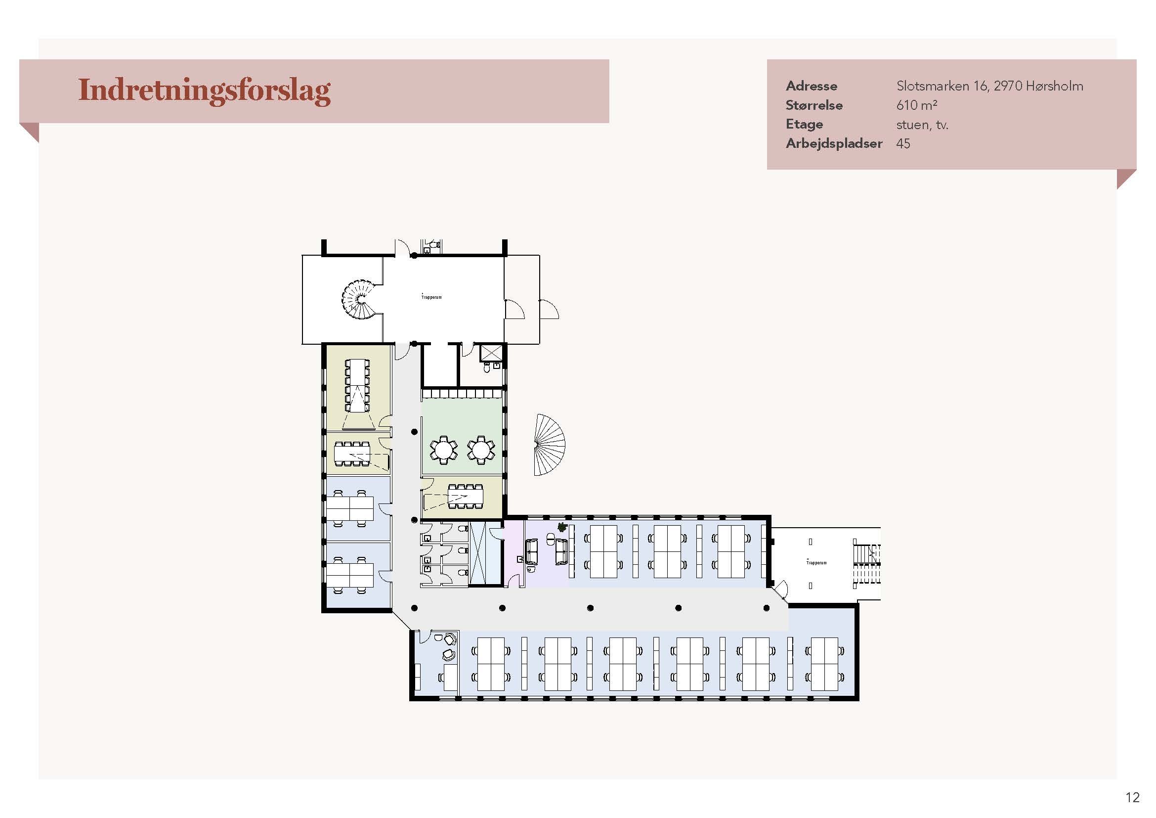 Slotsmarken 10–18 ligger i et attraktivt erhvervsområde med kort afstand til motorvejsnettet og Hørsholm Midtpunkt. Ejendommen er let tilgængelig med både bil og offentlig transport, og området byder på gode faciliteter, caféer og grønne omgivelser. Som lejer er der gode parkeringsforhold samt cykelparkering ved ejendommen.