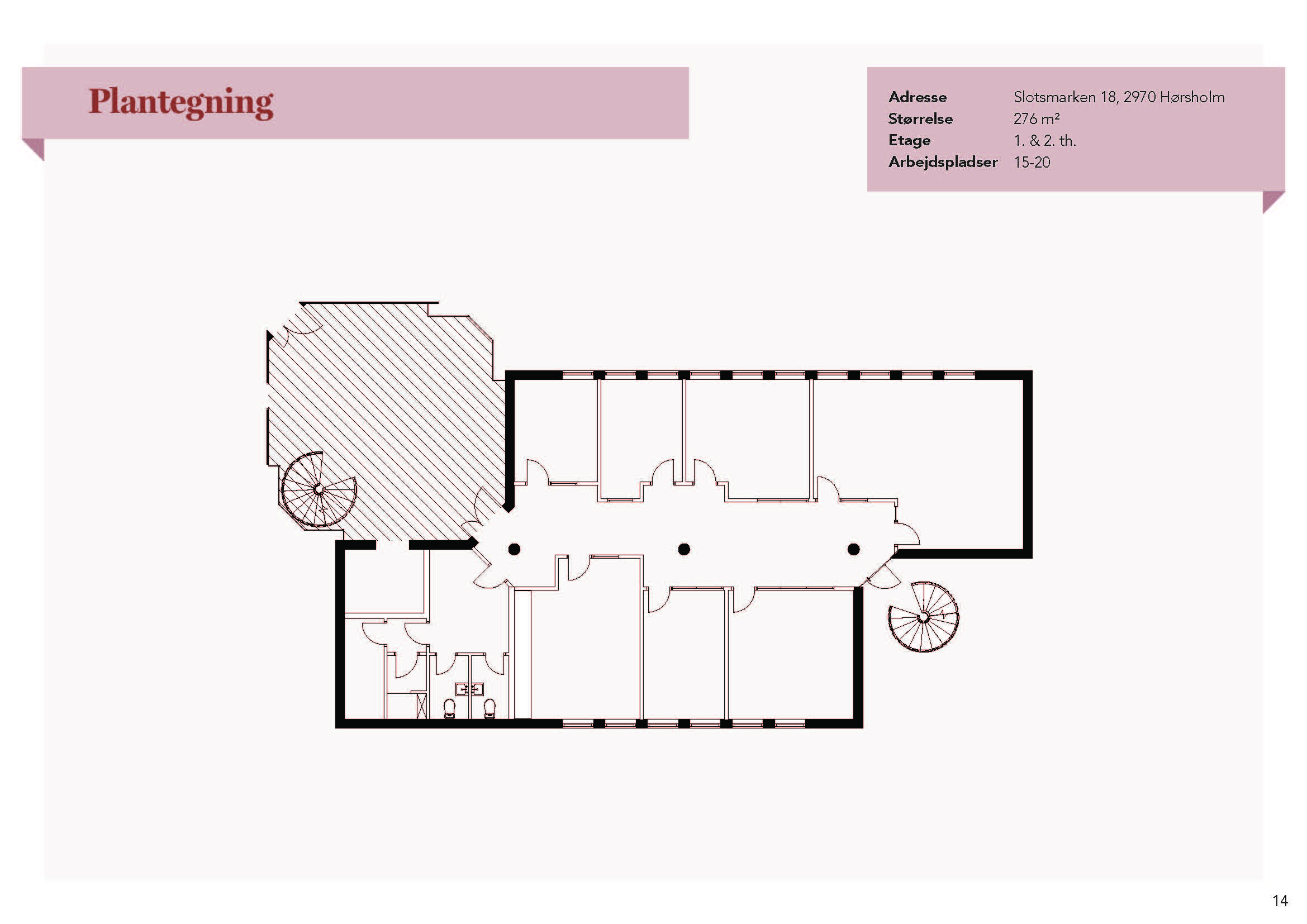 Slotsmarken 10–18 ligger i et attraktivt erhvervsområde med kort afstand til motorvejsnettet og Hørsholm Midtpunkt. Ejendommen er let tilgængelig med både bil og offentlig transport, og området byder på gode faciliteter, caféer og grønne omgivelser. Som lejer er der gode parkeringsforhold samt cykelparkering ved ejendommen.