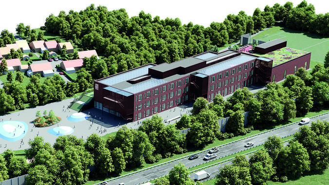 Arkitektur og Struktur - Bygningen består af tre forskudte bygningskroppe, der følger grundens geometri. Denne opdeling nedbryder bygningens skala og det danner en naturlig struktur for organisering af klassetrin. Klasserummene er placeret omkring åbne atriumtrapper, der sikrer dagslys og forbinder etagerne.